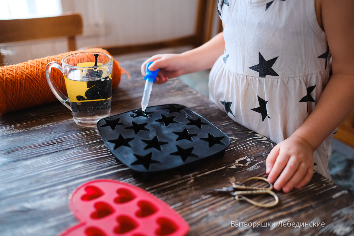 Давно мы улицу не украшали. Есть у нас несколько любимых идей для украшения улицы вместе детьми, но самые маленькие и простые украшения вот такие. Как сделать уличные игрушки из льда? 1. Берем формочки для льда (или для шоколада) 2. Заполняем их водой. Чтобы сделать процесс интереснее для детей - просим их сделать это ложкой или пипетками. Так интереснее и дети заняты. 3. Добавляем краски в формочки и перемешиваем. В черных формах это очень неудобно - цвет совсем не видно. У нас пищевые красители, может быть акварель, гуашь- все эти варианты мы пробовали. 4. Если мы делаем игрушки, то нарезаем ниточки для петель и кончики опускаем в формочки. 5. Если мы делаем гирлянду, то опускаем веревочку по очереди, в каждую ячейку по отрезку нитки. 6. Ставим в морозилку на пару часов и... вуаля-ля. Вынимаем красоту. С гирляндой мы ошиблись немного и один участок у нас получился пустой, но мы его в этом месте крепили к ветке. Главное, скорее бегите на улицу или снова ставьте в морозилку. Не