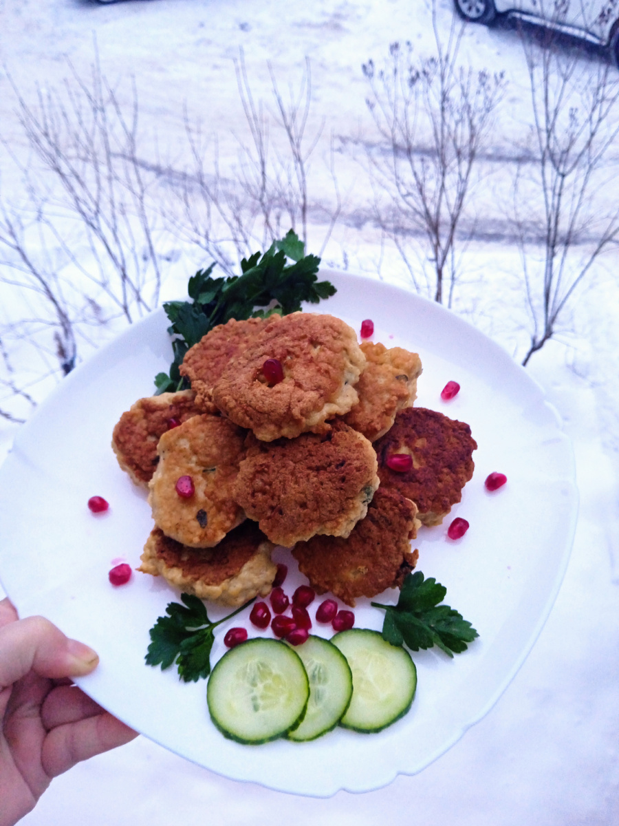 Добрый день, дорогие мои. Если Вы не знаете, что приготовить на ужин, то приготовте оладьи из куриного фарша. Это быстро, просто и конечно же вкусно. Итак начнём. Рецепт: 500 гр. фарша 1 лук 2 зубчика чеснока зелень 2 яйца 3 ст. л майонез соль, перец по вкусу Лук, чеснок, зелень, яйца, майонез взбить в блендере. Переложить к фаршу, посолить, поперчить. Можно добавить любимые специи. Перемешать. Если тесто жидковато, то добавить муки. Я добавила кукурузной 2 ст. л. Тесто должно быть как на оладьи. Оставить на 10 минут. Жарить на сковороде в масле. Подавать с овощами и любым гарниром. Приятного аппетита. Ваша Эсма.