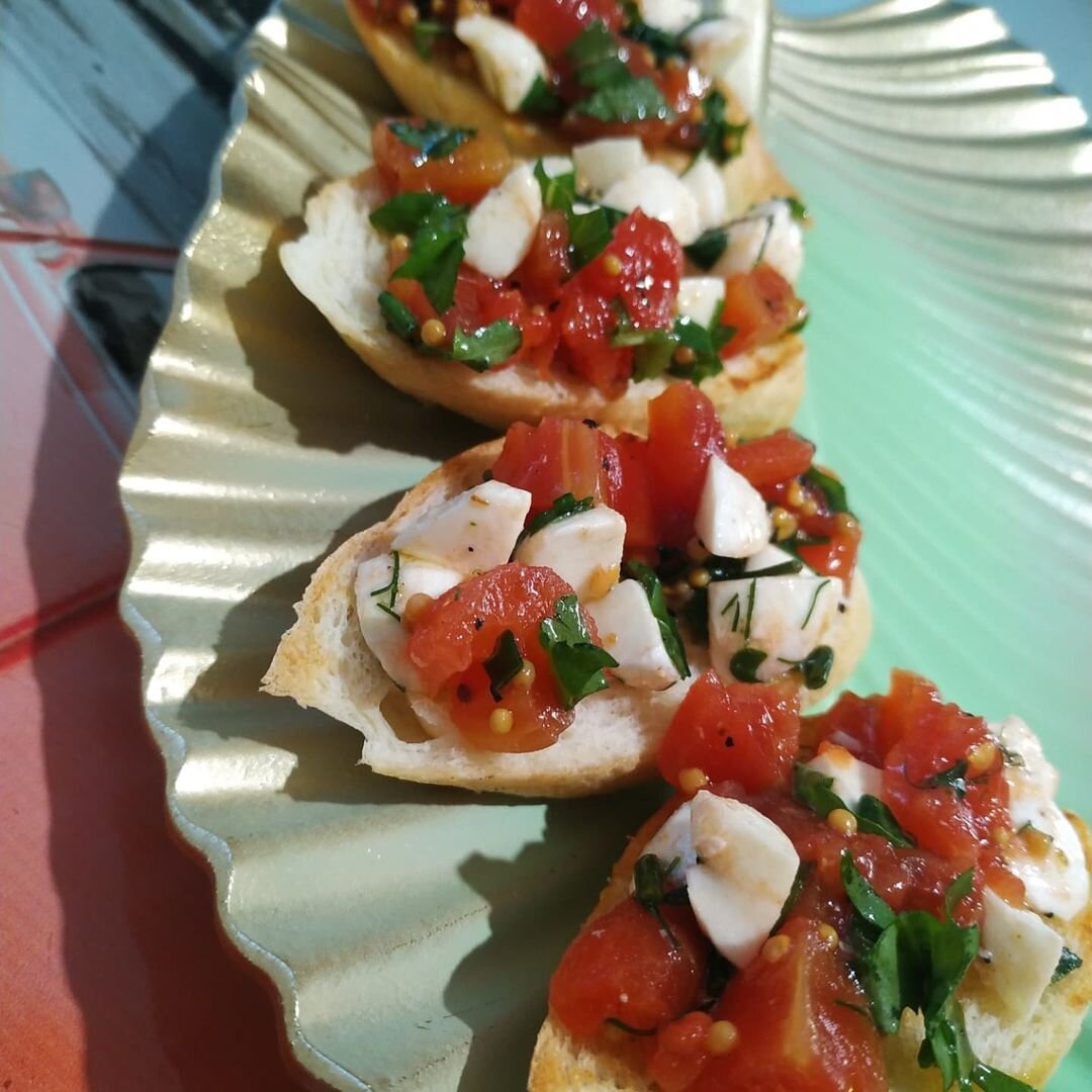 Нарезаем багет и немного поджариваем в бутерброднице, или на сухой сковороде.