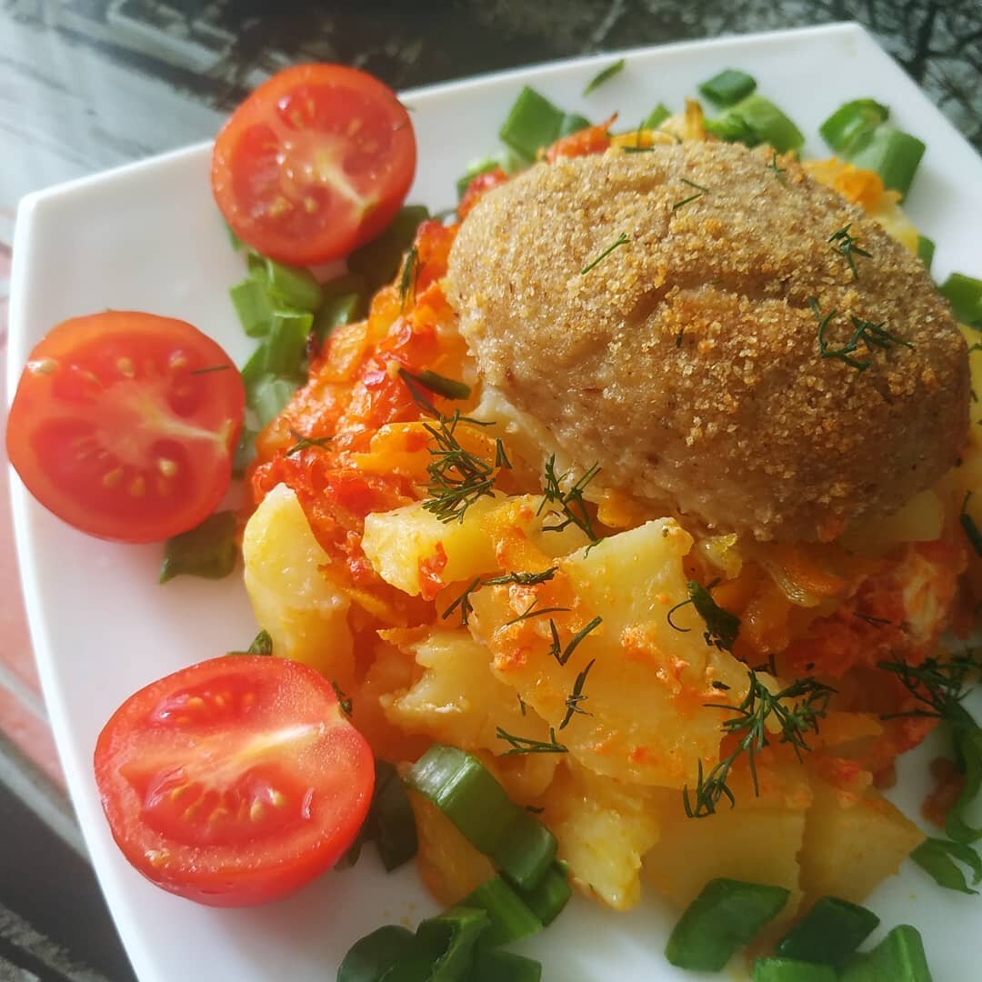 В форму для запекания выложить вареный картофель (я порезала на кружки).