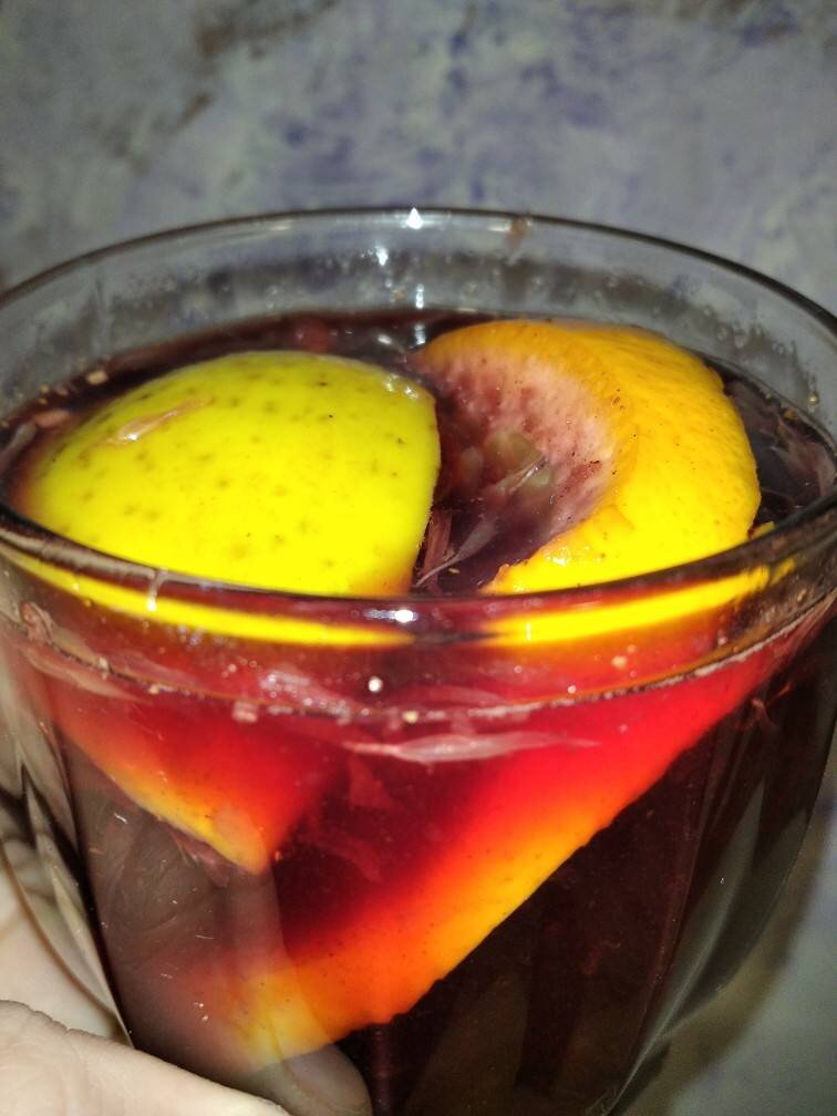 #канікули Ингредиенты: води, меду, червоного вина, мускатного горіха, кориці, апельсин, яблуко за бажанням, Якщо є бадьян Способ приготовления: Розігріти у каструльці воду і в ній розвести мед, дати спеції, гарно розігріти. Додати порізані кільцями апельсини і яблука дольками, ще потримати все 5-7 хв, але щоб не кипіло слідкуйте обов'язково. Тоді влити вино і нагріти до 60-70 градусів. Вимкнути, дати постояти 5 хв.і розлити у келихи. Смакувати теплим.