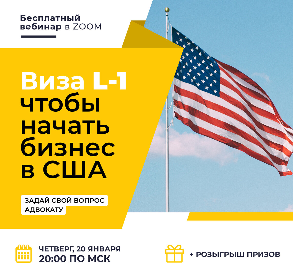⏱ 20 января 2022г., 20.00 по Москве мы проведем бесплатный вебинар на платформе Zoom. ТЕМА ВЕБИНАРА «Простая Виза L-1, чтобы начать бизнес в Америке»: Как увеличить шансы на визу США за счет инвестиций: виза L-1 через перевод в свой филиал в США. А также EB-5 - или как получить Green Card. Визы L-1 и EB-5 подходят иностранным бизнесменам с разными объемами инвестиций, которые хотят начать бизнес в Америке, вкладывать безопасно и одновременно получать визу и/или грин-карту. ЧТО ОБСУЖДАЕМ 💬 ➙ Как можно начать свой бизнес в Америке, 3 стратегии: Амазон, старт-ап, свой бренд? ➙ Какой тип компании, вид бизнеса хорошо подойдут для виз L-1 и EB-5? ➙ Каким должен быть ваш бизнес-план, чтобы получить высокие шансы на одобрение бизнес-визы? ➙ Чем отличается найм персонала для виз L-1 и EB-5, какие оклады в США? ➙ Как комбинировать визовые программы L-1 и EB-5, чтобы инвестировать небольшими частями и одновременно подавать на грин-карту, а также получить вид на жительство в США? ➙ Куда и как под