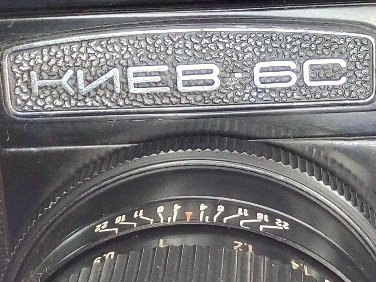 Когда я первый раз взял эту камеру в руки - первая мысль была: весомый аргумент в советском фотоделе. Среднеформатная зеркальная однообъективная камера Киев-6С весит 2 килограмма. Поскольку раньше я фотоделом занимался постольку-поскольку, с подобными камерами я не сталкивался. Информации по ней в интернете много, не буду заниматься перепечаткой. Для начала, чтобы у читателя создалось мнение о размерах этой камеры, сравним ее с Зенитом. Размер кадра у Киева-6С - 6х6 см. Пленка тип 120, с классическим расположением - слева и справа кассеты в плоском корпусе. Объектив Вега-12В с f-2.8 и рабочим отрезком 90 мм съемный на байонете. Для снятия объектива надо провернуть по резьбе рифленое кольцо у корпуса камеры. Камера Киев-6С системная. Кроме объектива, снимается и призма, которую можно заменить на шахту. Открывается фотоаппарат для замены пленки за счет проворота и осевого смещения двух замков на нижней грани корпуса, после чего крышка откидывается в сторону. Поскольку с камерой я не ра
