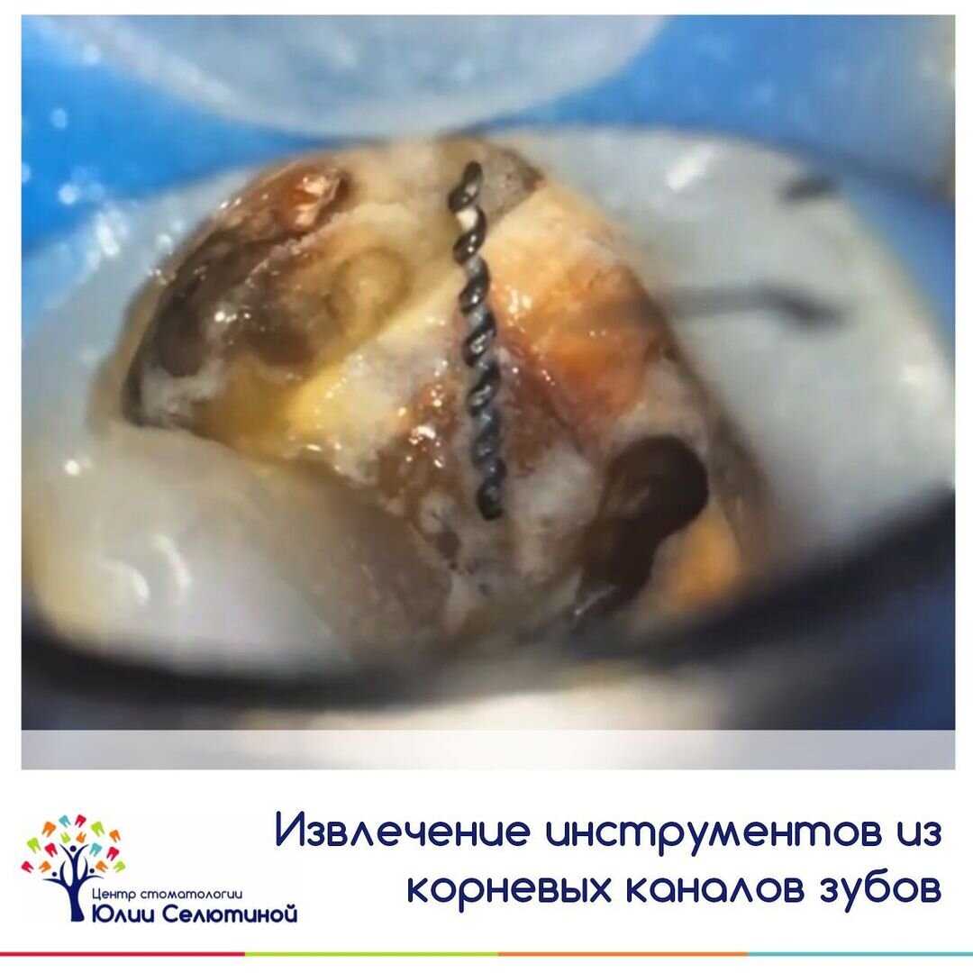 Как извлечь сломанный инструмент из канала? Это целый процесс! Практически в любой момент работы в канале инструмент может сломаться. Возможные причины: • сложная анатомия корневых каналов или их недообследование с помощью КТ или рентгена; • неправильная работа врача (чрезмерное давление, неверно выбранная скорость вращения файла); • использование несовременных эндодонтических файлов (инструментов, с помощью которых "чистят" каналы); • длительное использование инструмента и его износ; • перегрев при дезинфекции; • наличие в канале дентикля — это образования из дентина или дентиноподобной ткани; • редко — заводской брак. Что же делать, если инструмент все же сломался и остался в канале? Есть несколько методик: ✔️Ультразвуковой метод извлечения; ✔️Микротрубный — когда при помощи специальных инструментов пытаются извлечь сломанный файл; ✔️Метод обхождения сломанного инструмента. Методика подбирается индивидуально в зависимости от того, в каком канале, в какой части длины корневого кана