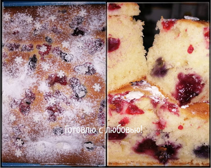 #быстро Этот пирог так прост в приготовлении, что выпекать его можно чуть ли не каждый день! Ингредиенты: мягкого сливочного масла, сахара, ванильный сахар или ванилин, соли, йогурта или кефира, яйца, муки, разрыхлителя, свежих или замороженных ягод Способ приготовления: Мягкое сливочное масло смешиваем с сахаром, ванилином и солью и взбиваем 2-3 минуты. Добавляем йогурт или кефир любой жирности. У меня два йогурта: натуральный и клубничный. Всё перемешиваем при помощи миксера на невысокой скорости. Добавляем по одному яйца, каждый раз тщательно перемешиваем. Просеянную муку смешиваем с разрыхлителем и добавляем к основной массе. Тесто перемешиваем, выкладываем в форму для выпечки и равномерно его распределяем. У меня форма прямоугольная 26 см х 20 см. Можно взять круглую диаметром 22-24 см. У меня замороженные ягоды: малина, голубика и ежевика. Ежевика крупная и очень сочная, поэтому я её обваляла в 1 чайной ложке муки. Ягоды раскладываем по верху теста. Пирог ставим в духовку, разогр