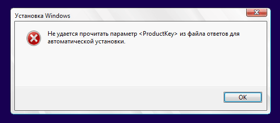 При установке некоторых сборок или финальной версии Windows 10 на виртуальные машины возникает ошибка: Не удается прочитать параметр <ProductKey> из файла ответов для автоматической установки.