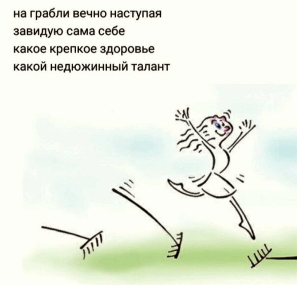 Грабли – они безвольные. Они не умеют передвигаться, ложиться в неподходящее место, стукать кого-то; и даже пожелать кого-то стукнуть они не могут. И посожалеть, что снова треснули – никак. А у человека – свобода выбора есть. У него есть тысячи дорог (а может больше), но он идет той самой, на которой грабли валяются. Может внутри прибор какой есть – ну, тот, который позволяет безошибочно находить грабли, где бы они ни были? Чем еще можно объяснить то, что человек снова и снова оказывается с ними рядом? Нет объяснения. Да, и ладно. Вот они. И лоб болит. Ну, ведь болит же уже? Болит? Ведь с каждым новым днем, с каждым новым ударом грабли бьют все по тому же лбу. В незаживающую рану. Увидел грабли! Потер лоб… И осторожненько так ногой запокачивал их за зубья – вот же: если потихоньку они ж не бьют! Мягонько, осторожненько… насту-у-упа-а-аем... БЭМС! Да ты что? Опять? Как так-то? Где объяснение? Ничего ж не предвещало! Пойти другой дорогой? В другую сторону. Перешагнуть. Сломать. Вскочить