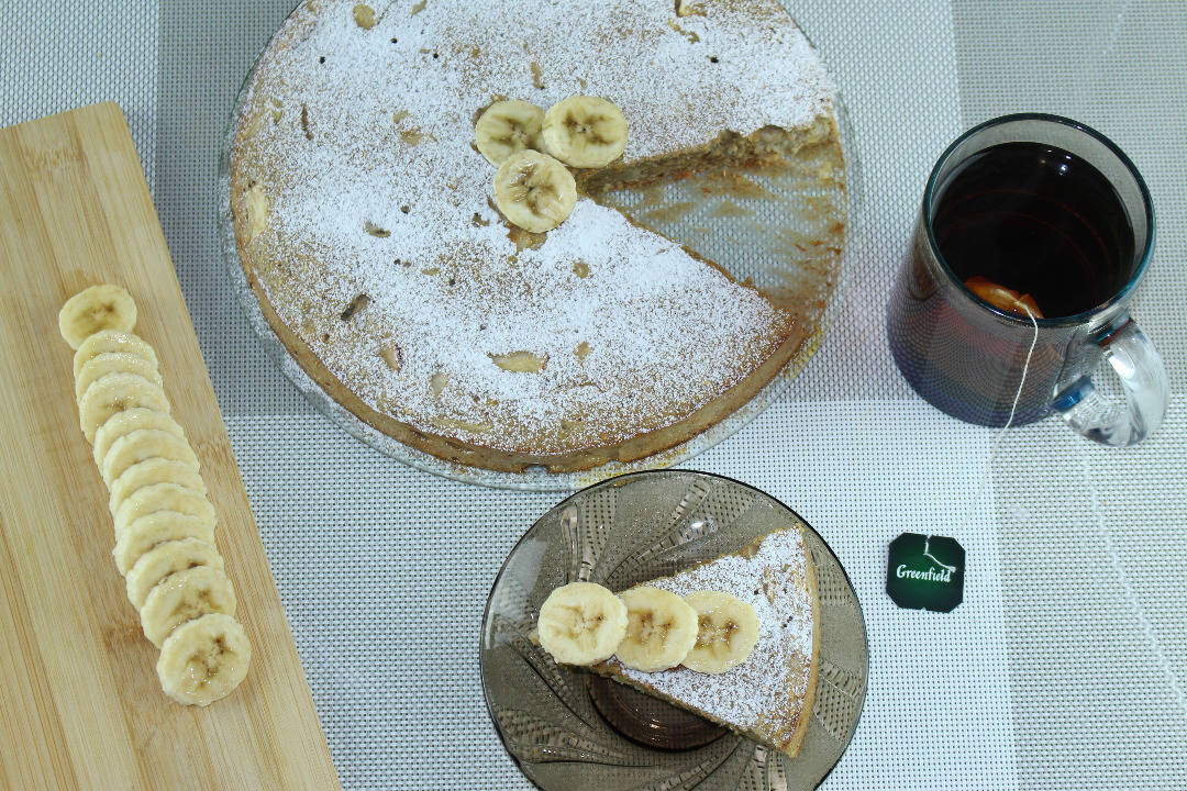 Сегодня поделюсь рецептом пирога без грамма сахара и муки. Ароматный банановый мякиш с кусочками яблок приятно удивит вас своим вкусом и полезным составом. #фотоурок7 Ингредиенты: банана, яблоко, куриных яйца, овсяных хлопьев, меда (по желанию), разрыхлителя Способ приготовления: Измельчаем овсяные хлопья в мелкую крошку с помощью блендера или кофемолки. Пересыпаем овсяную крошку в миску и смешиваем с разрыхлителем теста. По желанию можно добавить ароматные пряности, например, корицу, сушеную апельсиновую или лимонную цедру. Так как в этом банановом пироге с яблоками нет сахара, то бананы желательно брать спелые, а еще лучше слегка переспелые. Ломаем бананы на кусочки и складываем в чашу блендера. У меня бананы были не очень спелые, я добавила немного меда. Туда же добавляем яйца и перебиваем блендером в гладкую массу. Выкладываем жидкую смесь к сухой, перемешиваем до однородности и оставляем постоять. А пока нарезаем яблоко средним кубиком. Добавляем яблочные кубики в тесто и аккуратн