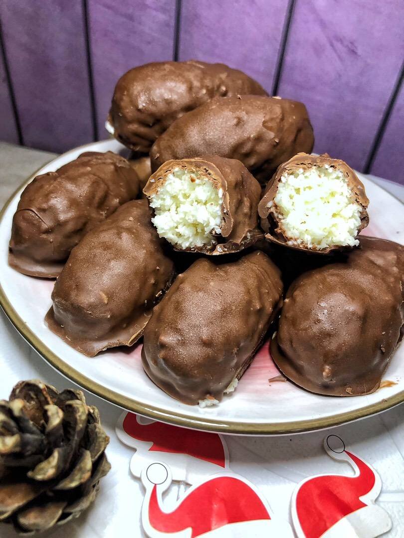 если вы очень любите эти конфеты, предлагаю повторить за мной и приготовить их в домашних условиях🥰 Получаются НАСТОЛЬКО ВКУСНЫМИ , что за чашечкой кофе не замечаешь, что съел почти всю тарелку.😅🥰 #баунти #конфеты #десерт Ингредиенты: кокосовой стружки, сгущённое молоко, молочный шоколад Способ приготовления: ❄️Приготовление: В ёмкость с кокосовой стружкой,добавляем сгущённое молоко. Тщательно перемешиваем, стружка уже в тарелке начнёт липнуть, это хорошо. Формируем батончики руками и закругляем края. Батончики выкладываем на пергамент, затем на другую ёмкость и отправляем в морозильную камеру на 30-40 минут. Перед тем как достать батончики, растапливаем шоколад в микроволновке. Достаём батончики, окунаем каждую конфету и выкладываем на пергамент. Повторно отправляем в морозильную камеру,чтобы шоколад застыл!!!🥰 Очень просто и вкусно! Будете готовить?🥰 Любите эти батончики?