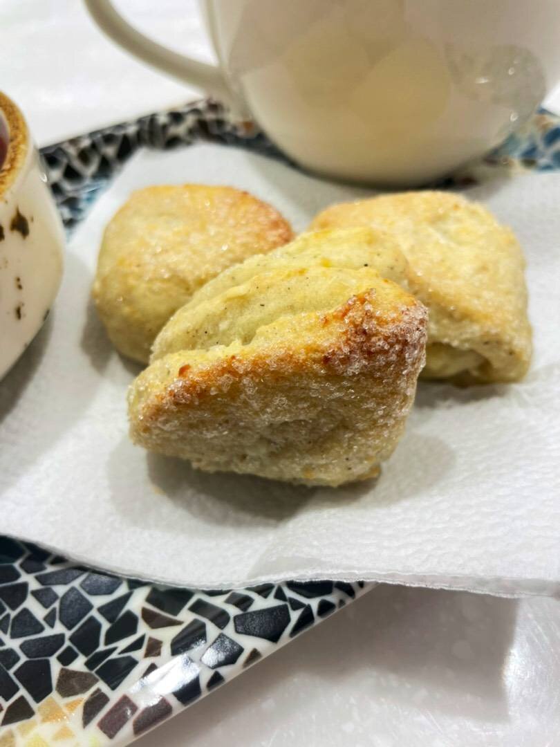 Печенье можно назвать ПР вариант, в нем практически нет сахара. Зато есть кокосовая стружка, которая позволяет убрать сахар. Ингредиенты: муки, яйцо, мука, сл масла, кокосовой стружки, разрыхлителя, Ванильный сахар (сахар с натуральной ванилью), сахар (для обваливания) Способ приготовления: В миске смешать творог, масло и яйцо. Масло заранее достать из холодильника, чтобы оно согрелось. Если творог очень зернистый, его надо перетереть через сито. Затем добавить муку, разрыхлитель, ванильный сахар и кокосовую стружку. Вымешать некрутое, но не липкое тесто. Раскатать тесто на слегка присыпанной мукой поверхности. Пласт теста не тонкий. Около 3-4 мм. Вырезать кружочки стаканом. Каждый кружочек сложить пополам и еще раз пополам. Обвалять в сахаре и переложить на противень на силикон или бумагу для выпечки. Выпекать 20 минут при 180 градусах.
