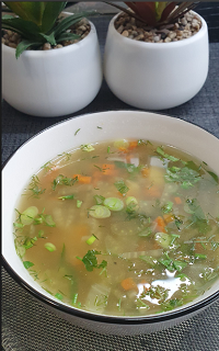 Суп на самом деле готовится из очень простых ингредиентов, но реально помогает после затяжных и сытых праздников, а так же является отличным помощником при похудении. Куриный бульон имеет много желатина, который является коллагеном с природным происхождением. Такой компонент в обязательном порядке должен присутствовать в нашем организме, чтобы поддержать красоту волос и кожи. Витамины группы В восстанавливают функции нервной системы, избавляют от раздражительности, улучшают сон. Сельдерей лежит в основе многих диет, которые предназначены для избавления от лишних килограммов. Морковь является источником клетчатки, которая крайне важна для полноценной работы пищеварительной системы. Она замедляет всасывание глюкозы и крахмала из просвета пищеварительного тракта, поддерживает адекватный состав микрофлоры. Лук – отличный источник витаминов в зимний период, когда других свежих овощей мало. В луке много витаминов группы В, а также марганца, меди, калия, фосфора. Они нормализуют водно-солевой