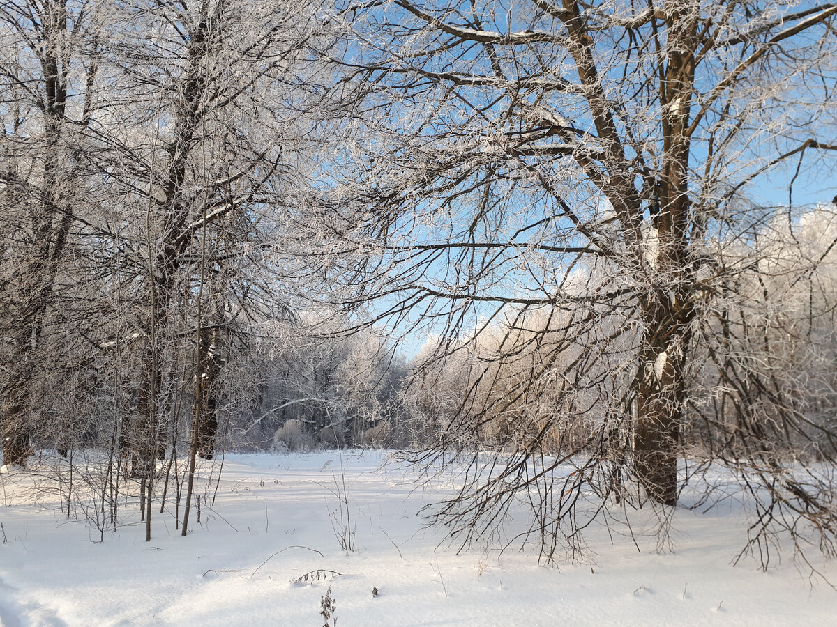 Недавно я пошла в магазин за продуктами и неожиданно очутилась …в зимнем лесу. Нет-нет, меня не выкрали, я сама;) В тот день было холодно, мороз, поэтому гулять в лесу я не собиралась. Но когда вышла на улицу, ноги сами понесли меня туда – такая стояла красота! Седые деревья на фоне голубого неба, иней искрится на солнце - пропустить это я не могла, благо лес находится совсем рядом.
