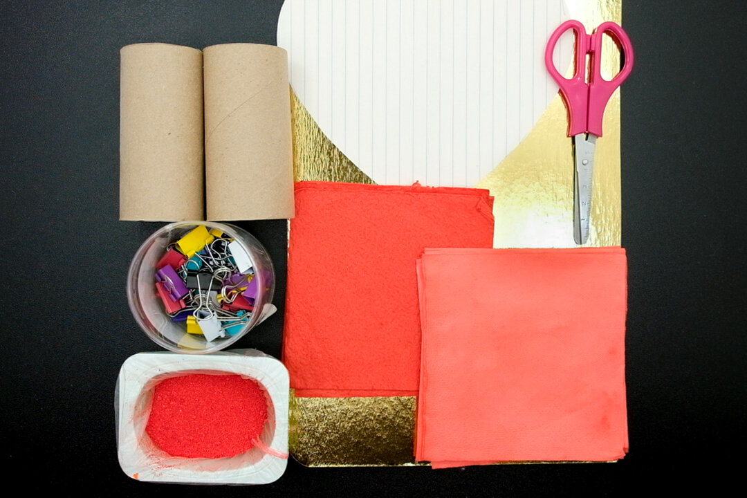 Открытка на День святого Валентина в виде сердечка-традиционный и вместе с тем желанный подарок. Способов её изготовления много, я придумала ещё один и хочу с вами поделится. Такую открытку легко смастерить вместе с ребёнком, отличное занятие для развития мелкой моторики. Валентинка своими руками Нам понадобятся очень простые материалы: картон фольгированный, салфетка, втулка от бумажных полотенец, ножницы, салфетки однослойные красные (можно окрасить самим ссылка внизу м/к) линейка, карандаш, зажим канцелярский, манная крупа окрашенная или цветной песок. Готовим бумажные втулки для изготовления сердечек, смотрите фотогалерею 4 фото. Вот, что у меня получилось. Сворачиваем кольца в сердечки и фиксируем канцелярскими зажимами. Пока сердечки сохнут из фольгированного картона вырезаем валентинку. Я воспользовалась картоном который служил подложкой для вафельной бумаги. И ещё одно небольшое сердечко из красного картона. Наши заготовки высохли и выглядят теперь вот так. На дно крышки или бл