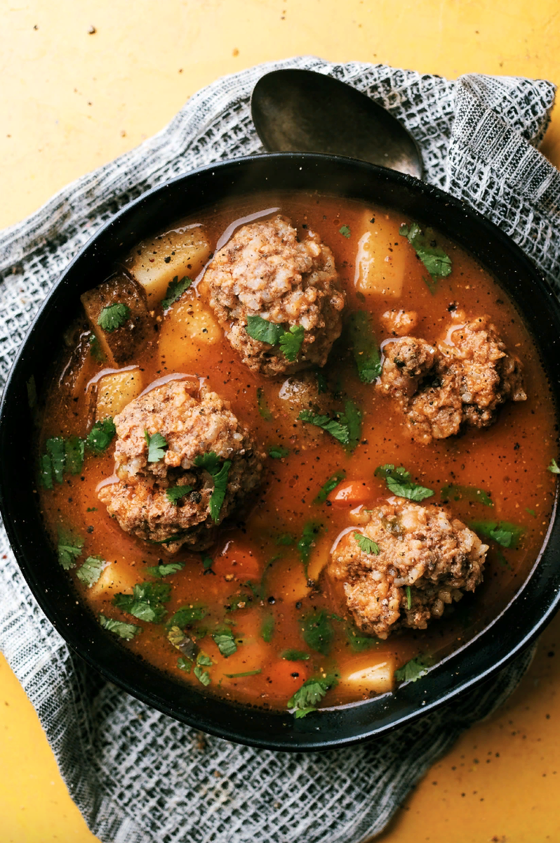 Если вы никогда не пробовали миску мексиканского супа, вы упускаете что-то удивительное. Это суп с фрикадельками, сваренный на медленном огне в бульоне на томатной основе, приправленном небольшим количеством кинзы. Немного напоминает мне тушеное мясо, но вкусовой профиль безумно хорош! За фрикадельки в супа можно умереть. Как и итальянские фрикадельки, для начала они начинаются с говяжьего фарша, панировочных сухарей и яиц. Но приправленные тмином, кинзой и смешанные с рисом, они делают их такими вкусными и приятными, что вам захочется съесть двойную порцию этих фрикаделек. Итак, вдохновение для моего супа пришло от любви моей дочери к “фрикаделькам и рисовому супу”, который она кушает в школе. Мне потребовалось немного времени, чтобы понять, о чем именно она говорила, но как только это щелкнуло, я понял, что пришло время поделиться рецептом супа! Я начал с нарезанных кубиками помидоров, лука и чеснока. Дайте им немного повариться на сковороде, затем перемешайте, пока не получится п