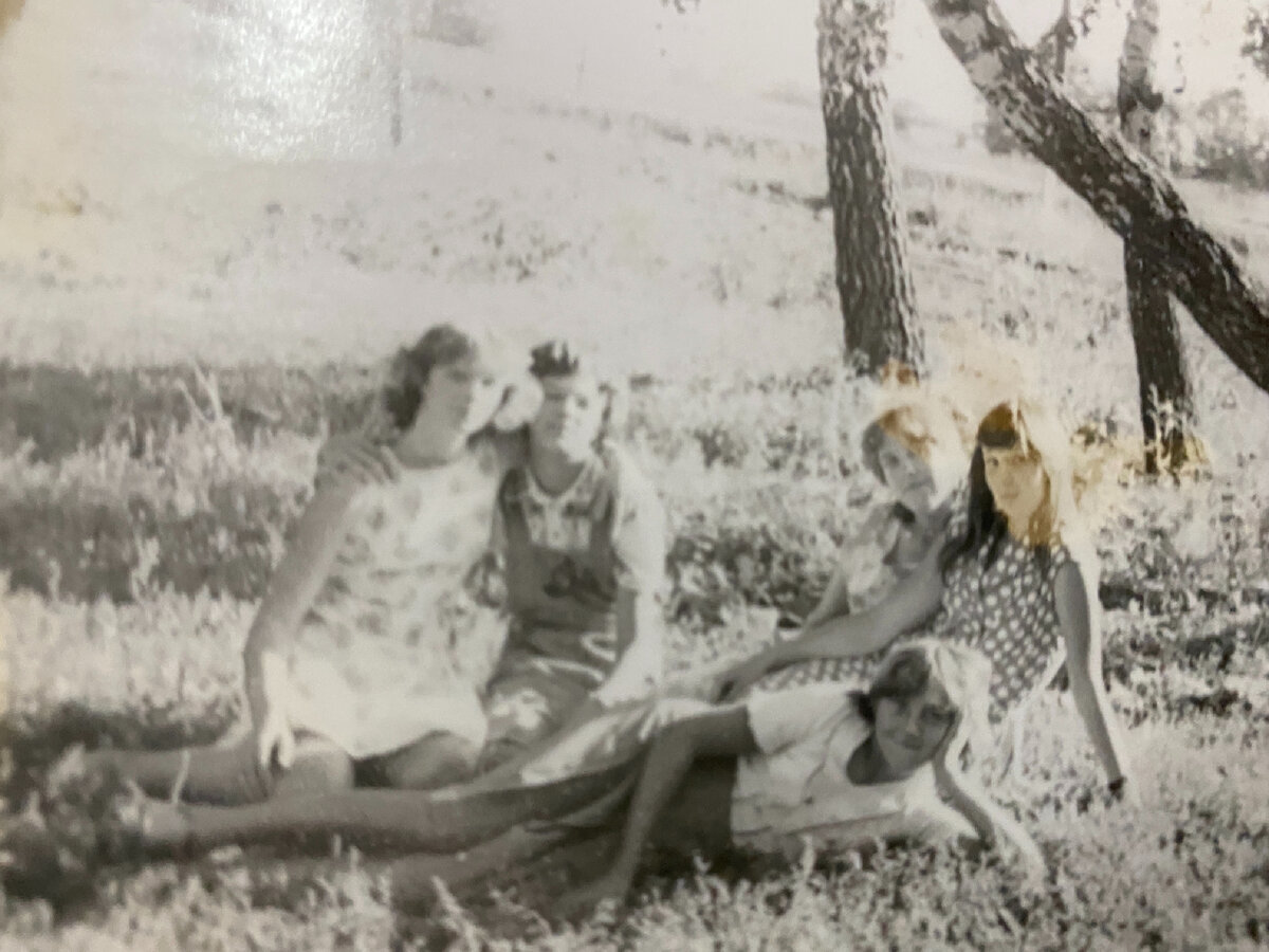 Всем привет, друзья. Однажды, убирая дома, мне удалось найти на полке шкафа мамин старый фотоальбом. Вместе с ней мы посидели и посмотрели фотографии из маминой молодости. Это было начало 80-х годов. Жила моя мама в то время в городе, но на лето уезжала в деревню к бабушке, моей прабабушке. И там проводила практически все лето. И вот я хотел бы показать несколько фотографий из того времени, из маминой молодости в деревне. В деревне у моей прабабушки в то время было большое хозяйство. Очень много домашней скотины и очень большой огород. Семья у прабабушки тоже была большая. Летом все приезжали в деревню и помогали с хозяйством. В период сенокоса мужчины обычно косили траву, а девушки ходили ее ворошить. Вот и моя мама с подружками, после того, как переворошили все сено шли отдыхать в близлежащую рощицу, где можно было укрыться от палящего солнца. Ну и конечно же, девушки фотографировались на природе. Все-таки в то время у каждого, как сейчас, смартфонов и Инстаграма не было. Фото де