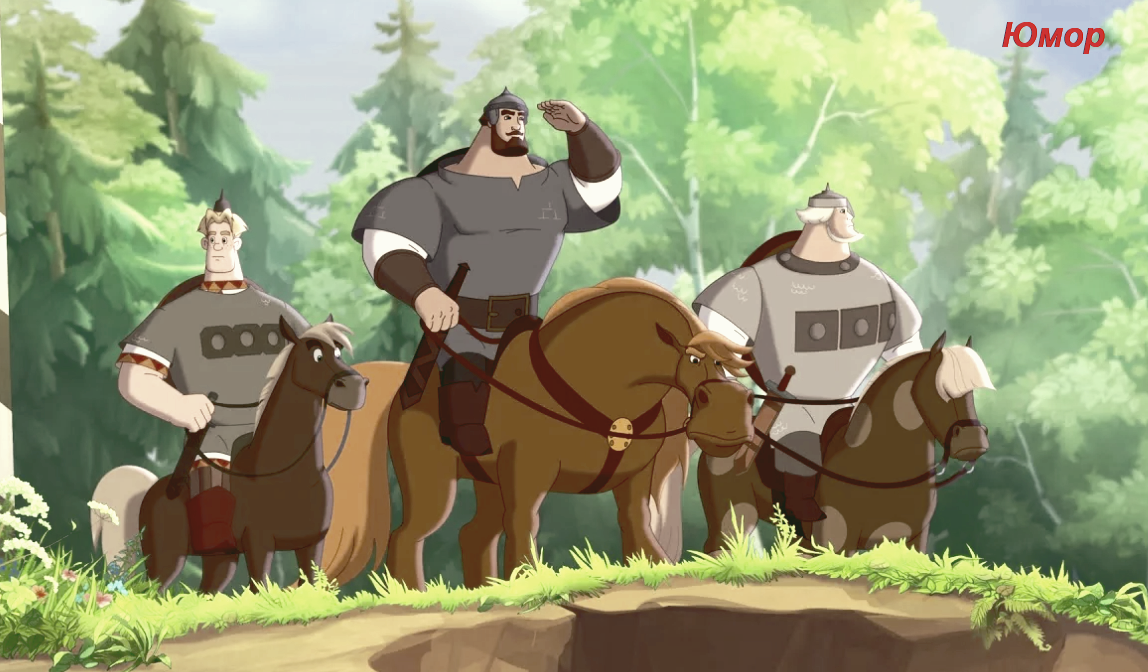 Жили себе поживали три богатыря у себя дома, уже долго их к себе по приказу не вызывал князь, по этому приходилось только домашними делами управляться. Воды там принести, дров наколоть да жене помочь иногда дома убраться Как то вечером сидят они дома, как в дом врывается вестник и говорит ему задыхаясь, скорее к князю, вызывает вас всех. Тут же богатыри вскочили из-за стола, собрали все нудные вещи, мечи с щитами взяли, запрягли коней, жену поцеловали и двинули в путь. Вот едут они втроем да рассказывают, чем дома занимались и как скучали по этим вызовам князя, давно уже пора силушку использовать во благо Руси. Спустя 2 километра встречается им по пути красавица, тут Алешка решил взять на себя обязательство разобраться, в чем тут дело и говорит: - скачите дальше, ребятки, я справлюсь и подтянусь сам Вот скачут они и спустя также 2 километра еще одна девушка, а эта еще краше чем та, тут же Добрыня решил взяться за это дело и говорит Илье: - ты ступай, друг мой верный, а я догоню Едет он