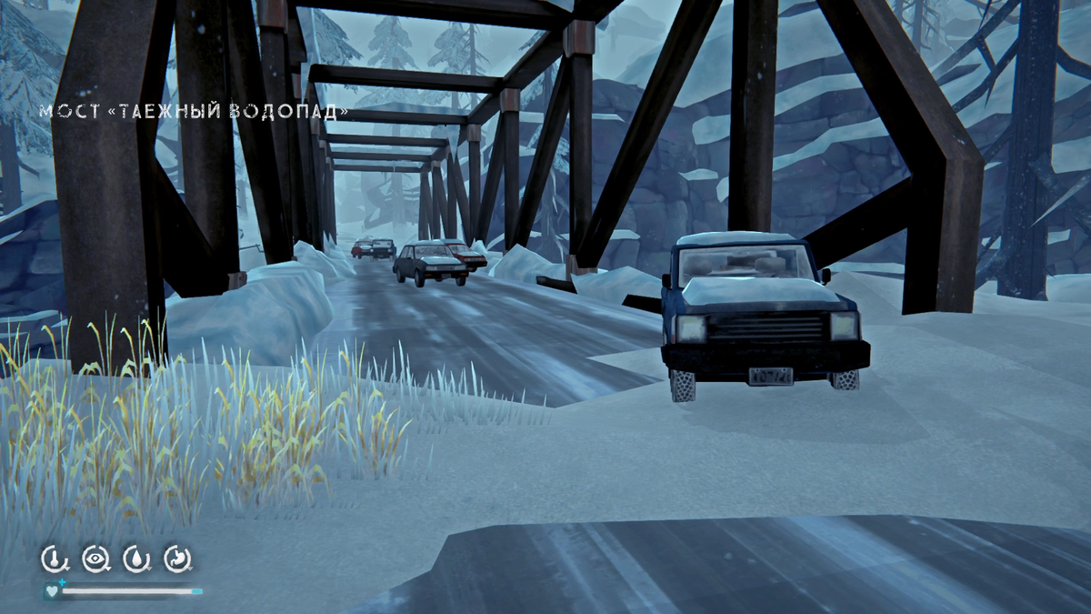 Полное прохождение The Long Dark от нашего канала FamilySmol_Play, оставайтесь с нами. Отогревшись, Маккензи выходит из Церкви. Холод The Long Dark мгновенно цепко хватает все тело, ветер сбивает, бросает снег в лицо. Факел не помогает. Дорогу завалило, всюду много упавших деревьев. Пещера, нужно добежать туда. Маккензи разводит костер, греется, кушает. И идти дальше. Скалы устрашающе нависают, лес отбрасывает пугающие тени. Только волков еще не хватало. Они поблизости, воют. Спрятаться от них не получится, остается бежать. А впереди.. Мост? Маккензи добрался, получилось. Но страх наполняет все больше. Неизведанная территория, обрывы. Это река, вода сверкает льдом. Хватит рассматривать, нужно найти тайник. Он в машине. Маккензи находит еду и сигнальный пистолет. Совсем рядом еще машины. Как много их брошено на мосту. Спички, горючее, еда. Маккензи забирает все припасы и выдвигается в путь. Тупик из скал и какая-то пещера. Опасно и темно, ничего не видно. Только заледенела вода и остров