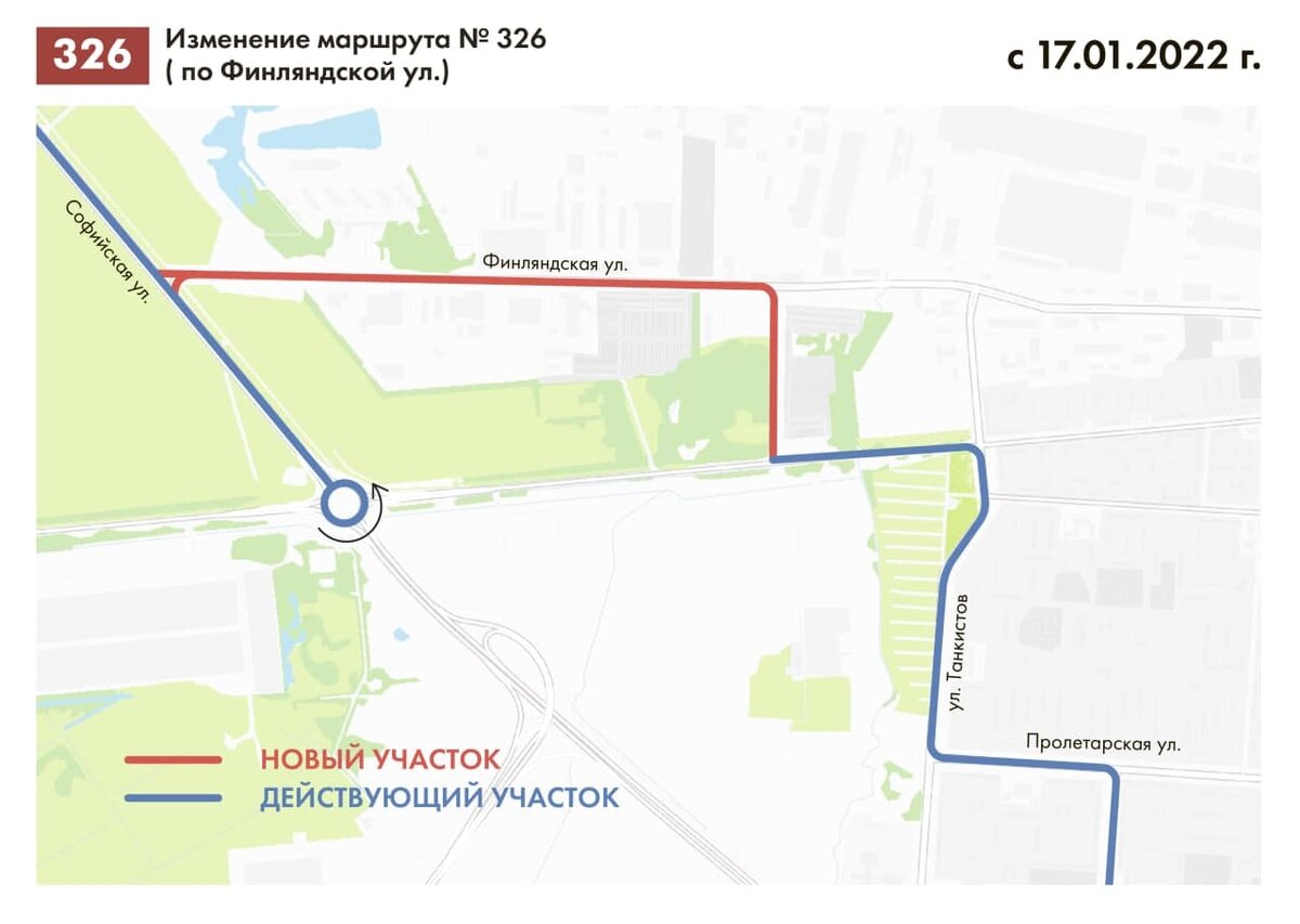 С 17 января изменится трасса автобуса № 326 на двух участках: