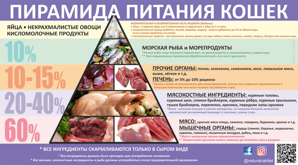 Основная формула еды для кошек проста: половина белка (мясо) и по одной четверти углеводов (круп) и овощей (клетчатка).
