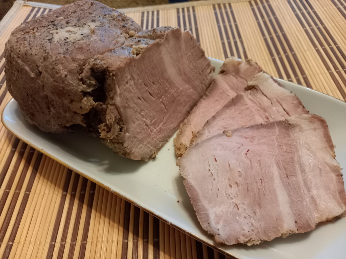 Сегодня расскажу как в домашних условиях легко и просто приготовить вкусный мясной деликатес. Я не придумал этот рецепт, а взял его в "Справочнике технолога колбасного производства". Приступим. Шейка "Московская" запечённая высшего сорта (ГОСТ 17482) Сначала мясо (свиную шею) необходимо посолить. 1-й способ (сухой посол) Натереть шейку посолочной смесью в количестве 4,9% от массы мяса. Состав посолочной смеси: поваренная соль - 61,2%, чеснок - 30,6%. чёрный молотый перец - 8,2% 2-й способ (в рассоле) Мясо уложить в ёмкость и залить рассолом в количестве 20-30% от массы мяса. Плотность солевого рассола 1,206 г/см3. Оставить мясо в рассоле на 1,5...2 часа Я предпочитаю сухой способ. После посола уложить шейку в форму для запекания и запекать при температуре 120...150 градусов до достижения температуры в толще продукта +71 градус Я запекаю при +140. Готовую шейку остудить в холодильнике до температуры +8 градусов. Как видите, очень просто. И уверяю вас очень вкусно! Ещё больше п