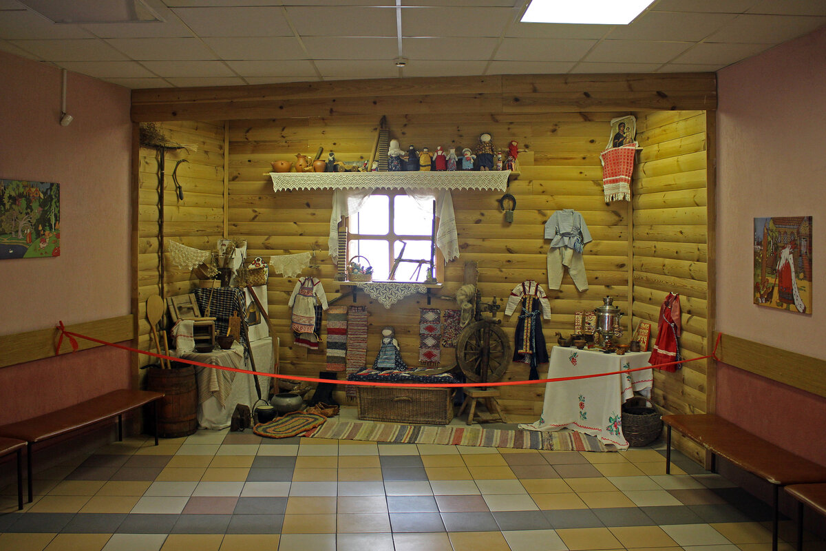 Продолжу свой рассказ о музейной площадке, которая находится в школе №291 (Красносельский район Санкт-Петербурга). Как я говорил, музей имеет 3 зала: "Герои Отечества", "Русская изба" и "Ленинградская квартира". Про последний читайте в прошлой заметке. В этой же я начну свой рассказ с экспозиции "Русская изба", которая была открыта в марте 2017 года. Данное выставочное пространство залом можно назвать условно так как оно находится в рекреации. То есть вне стен кабинетов. Учащиеся, которые прогуливаются по коридору во время перемены могут подойти и ознакомиться с предметами деревенского быта. Довольно интересная идея приобщения детей к культуре своей страны. Как мне сказали, у данной экспозиции было довольно много скептиков, которые говорили, что предметы будут постепенно исчезать в детских руках. Кто-то усомнился в чистоте помыслов ребят. Но нет, прошло уже несколько лет. Экспозиция цела и невредима, а дети проявляют исключительно познавательный интерес! Здесь представлены как аутентич