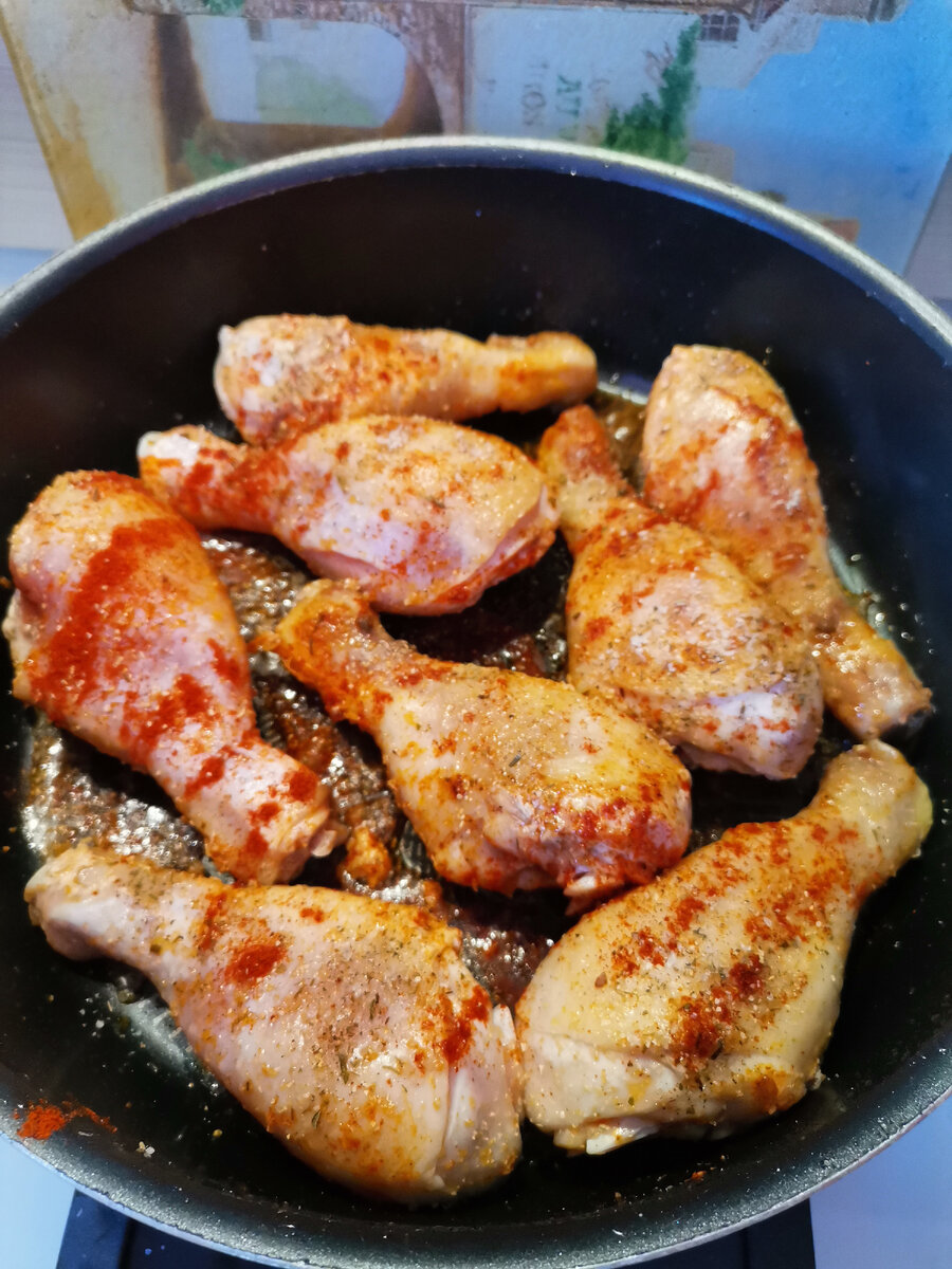 Добрый вечер дорогие мои, сегодня я с вами поделюсь рецептом курочки с картошкой. В нашей семье все такую любят. Берем упаковку голеней куриных, можно взять любую часть курочки. Но в нашей семье все любят ножки. Кладем в глубокую сковородку, у меня tefal. Наличием немножко масла, зажигаем комфорку на средний режим. Посыпаем курочку, паприкой, адыгейской солью и сушеным чесночком. Накрываем крышкой и готовим до подрумянивания. Выделится сок, она у нас должна не жарится а тушиться в небольшом количестве жидкости. Как чуть подрумянилась, переворачиваем, посыпаем вторую сторону специями, так же накрываем крышкой и эдем когда вторая сторона подрумянится, если жидкость совсем испарилась, чуть подливаем. Берем килограмм картофеля, режем каждую картошку пополам, потом еще пополам и затем небольшими кусочками, выкладываем в сковородку. Режем мелко лук, добавляем туда же, Если необходимо добавляем водички, чтоб было чуть выше середины картофеля накрываем крышкой и периодически помешивая, тушим