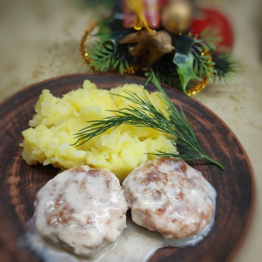 Люблю кормить своих родных вкусно и разнообразно. За идею спасибо Маргаритка @cook_17965468 ❤. #врабочемритме #быстро Ингредиенты: фарша, луковица, отваренного риса, яйцо, муки, Соль, специи , Для соуса:, молоко и вода, муки, соли, Лавровый лист, На гарнир:, Картофель с топлёным маслом Способ приготовления: Для фарша соединить мясной фарш, мелко нарезанный лук, рис, яйцо, муку, соль и специи. Сформировать влажными руками биточки и обжарить с двух сторон на предварительно разогретой сковороде на растительном масле. Биточки выложить в сотейник, добавить масло со сковороды, лавровый лист и влить соус. Тушить после закипания минут 15. Подать с картофелем. Приятного аппетита😍! Если вам по душе мои незатейливые рецепты: подписывайтесь и оставляйте свои фотоотзывы📸!