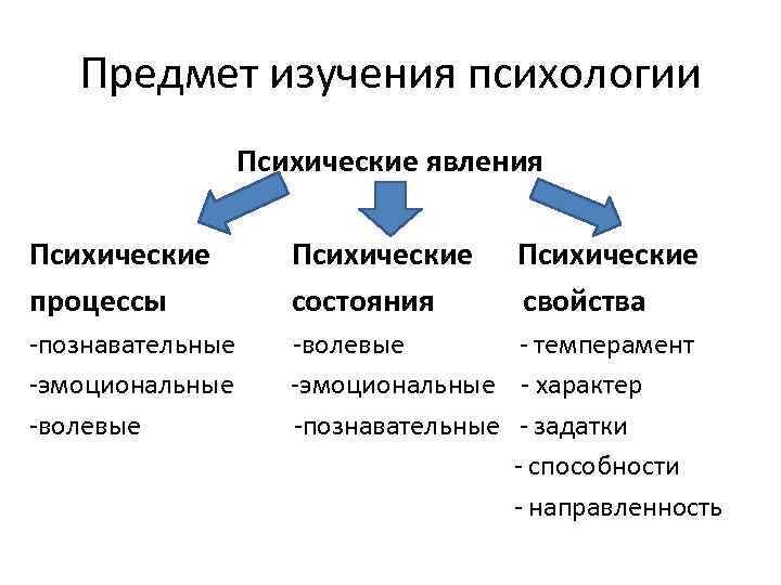 Психика заключает в себе внутреннюю картину мира, неотторжима от тела человека и представляет собой совокупный результат функционирования его организма, прежде всего центральной нервной системы, она обеспечивает возможность существования и развития человека в мире. Задолго до того, как психические процессы, свойства, состояния стали предметом научного анализа, накапливалось житейское психологическое знание людей друг о друге. Оно закреплялось, передаваясь от поколения к поколению, в языке, в народном творчестве, в произведениях искусства. Его вбирали, например, пословицы и поговорки: «Лучше один раз увидеть, чем десять раз услышать» (о преимуществах зрительного восприятия и запоминания перед слуховым); «Привычка – вторая натура» (о роли упрочившихся привычек, которые могут конкурировать с врождёнными формами поведения) и т.п. Что же составляет предмет научного изучения в психологии? Это прежде всего конкретные факты психической жизни, характеризуемые качественно и количественно. Так, и