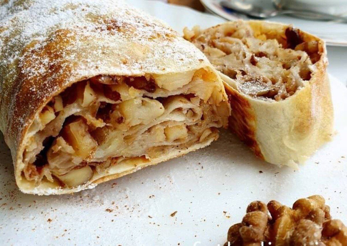 на 100грамм - 106.44 ккалБ/Ж/У - 2.08/3.43/16.48 Ингредиенты: 5 маленьких или 3 больших яблока; лаваш 100 грамм; йогурт натуральный 100 грамм; дробленый грецкий орех ( можно любой другой) 50 грамм; мёд ~ 2 ст.л Приготовление: Яблоки нарезаем на небольшие кусочки. Перекладываем в антипригарную сковороду, добавляем ~ 100 мл воды ( можно ещё добавить корицу) и тушим ~ 5-7 минут на среднем огне. Далее берём лаваш, смазываем его натуральным йогуртом. Выкладываем орешки, яблоки, поливаем мёдом и сворачиваем в рулет. Сверху также обмазываем натуральным йогуртом. Отправляем в духовку на 200 градусов ~ 10 минут.