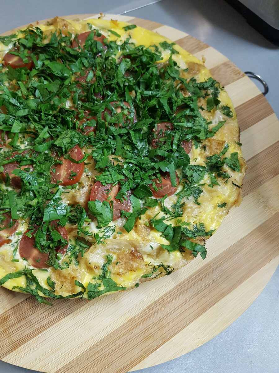 Лист лаваша режем небольшими полосками. Обжариваем на растительном масле минут 5. Заливаем яйцами, смешанными с молоком. Посыпаем тертым сыром и выкладываем помидорки. Готовим под крышкой до готовности (минут 10) #омлет #омлет рецепт #омлет с сыром #рецепт вкусного завтрака #воскресный завтрак #омлет с овощами #яичница #яичница на завтрак #вкусный завтрак #быстрый вкусный завтрак