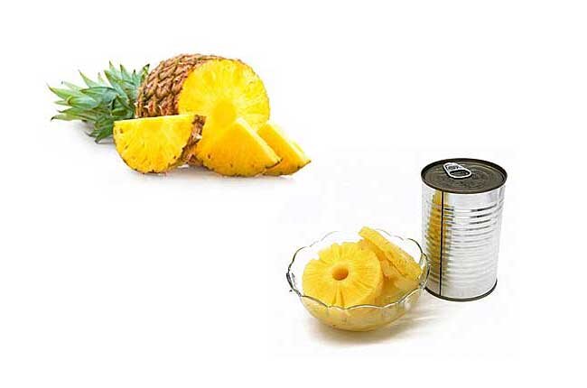 Ананас — так называют плод южного растения. Он напоминает огромную шишку, увенчанную зеленой «короной» из колючих листочков. Его ценят не только за потрясающие вкусовые качества, но и за ряд полезных свойств. Польза ананаса - это его способность "регулировать" артериальное давление, разжижать кровь и предотвращать развитие опасных болезней сердечно-сосудистой системы, например – тромбоза, атеросклероза, инсульта и инфаркта миокарда. А еще он стимулирует процессы пищеварения, благодаря усилению ферментной активности желудочного сока. Чтобы достичь такого результата, следует при обильных приёмах пищи выпивать стакан ананасового сока (или же съедать ломтик свежего фрукта). Этот плод отличается высоким содержанием пищевых волокон и органических кислот. Есть в нем и минералы — калий, фосфор, железо, медь, цинк, магний, марганец, йод. Ну и, разумеется, нельзя не сказать о его витаминном составе — В1, В2, В12, РР и А. Сколько в нем калорий? А вот сколько: Калорийность консервированного ананас