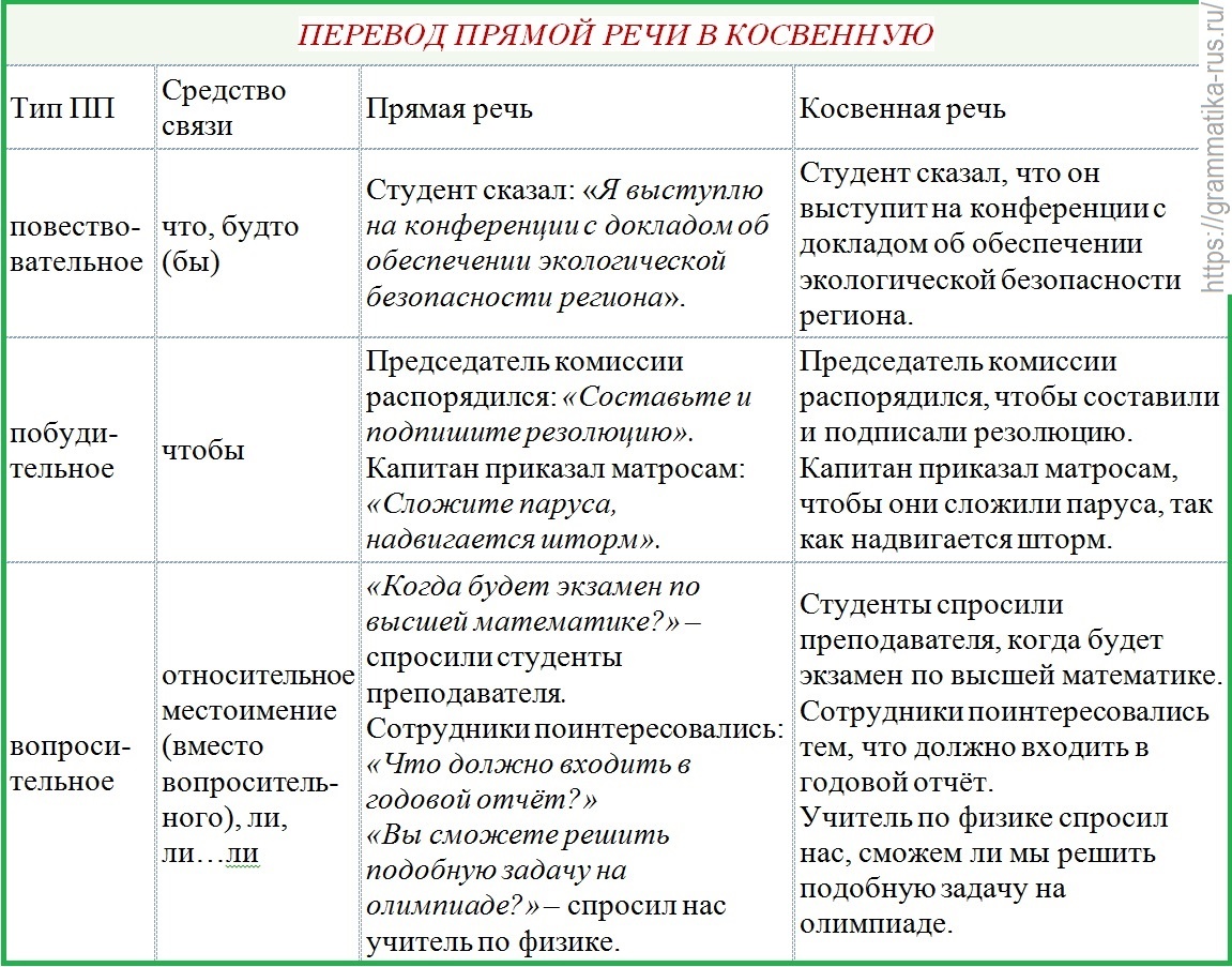 Чтобы не допустить ошибки при переводе прямой речи в косвенную, надо помнить: