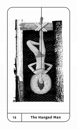 Он претерпевает, своего рода, распятие. Это отсылает нас к образу апостола Петра, который просил распять его вверх ногами в знак смирения. Нет никаких доказательств, что герой Таро просил, чтобы его выставили к позорному столбу, но учитывая психологический контекст, он «просил» о своей участи – именно бессознательно».