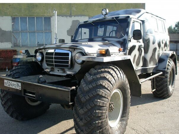 В нашей стране создаётся достаточно большое количество самодельных автомобилей. Обычно это вездеходы, которые не надо ставить на учёт. Но бывают и другие варианты. Не забывайте также посмотреть предыдущую часть >> Сегодня начнём с настоящего монстра. Предположу, что он построен на шасси полноприводного грузовика ГАЗ-66, по крайней мере рама выглядит явно великовато для кузова. Сам кузов тоже необычный. Капот и передняя часть тут от УАЗа-469. Решётка радиатора - от классического Mercedes-Benz (видимо что-то вроде W123). Далее к рамке лобового стекла от того же 469-го приделана кабина от УАЗ-3303, которая постепенно переходят в заднюю часть от УАЗ-452 (или же от какой-то версии производства ремзаводов). Всё это опирается на землю при помощи огромных колёс, разнесённых по краям шасси, так что проходимость должна быть феноменальной. А вот такое необычное купе было выставлено недавно на продажу. Вот что пишет продавец: «Эксклюзивный автомобиль,таких было выпущено 4 шт, стеклопластиковый куз