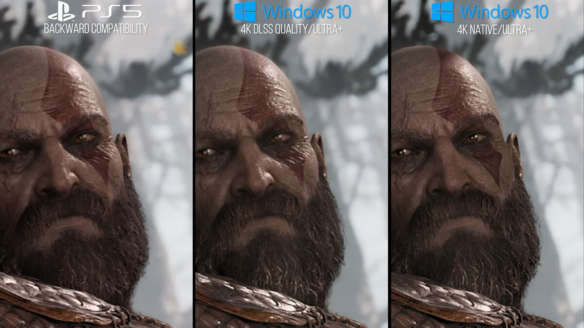 Благодаря тому, что на ПК игра работает в нативном разрешении или с применением техники суперсэмплинга, улучшения в визуальном плане видны повсеместно, в том числе на моделях персонажей. Так, борода Кратоса выглядит более естественной и детализированной. Алекс Батталия протестировал все возможные графические параметры игры и выяснил, какие из них сильнее всего влияют на производительность, но при этом меньше всего сказываются на качестве картинки. В рамках тестов God of War потребляла до 5,5 ГБ видеопамяти при разрешении 1080p с наивысшим значением качества текстур и до 7,2 ГБ при нативном разрешении 4K. При этом разница в детализации окружения в основном незначительная, за исключением качества растительности. В связи с этим специалист посоветовал выбирать «средние» настройки текстур на видеокартах c 6 ГБ памяти или меньше.