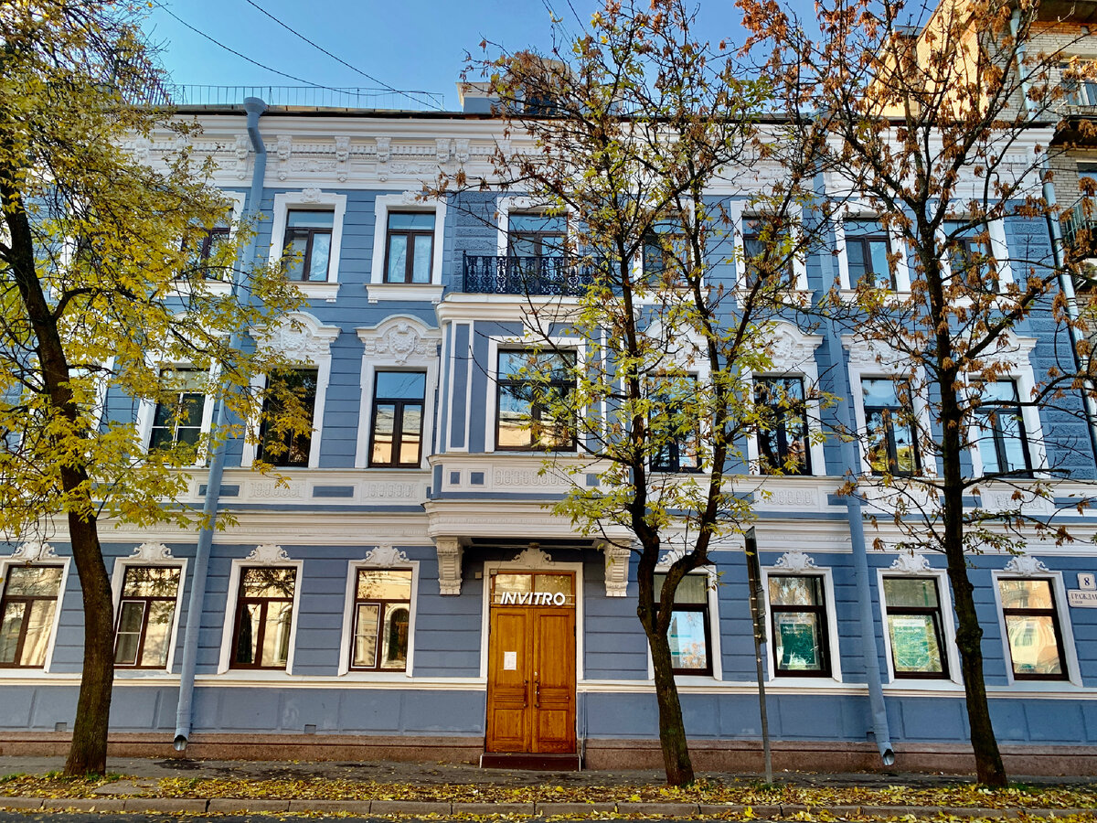 36. Красивый модерновый дом на углу улиц Аммермана (Песочной) и Интернациональной (Богоявленской), сейчас там хоспис: