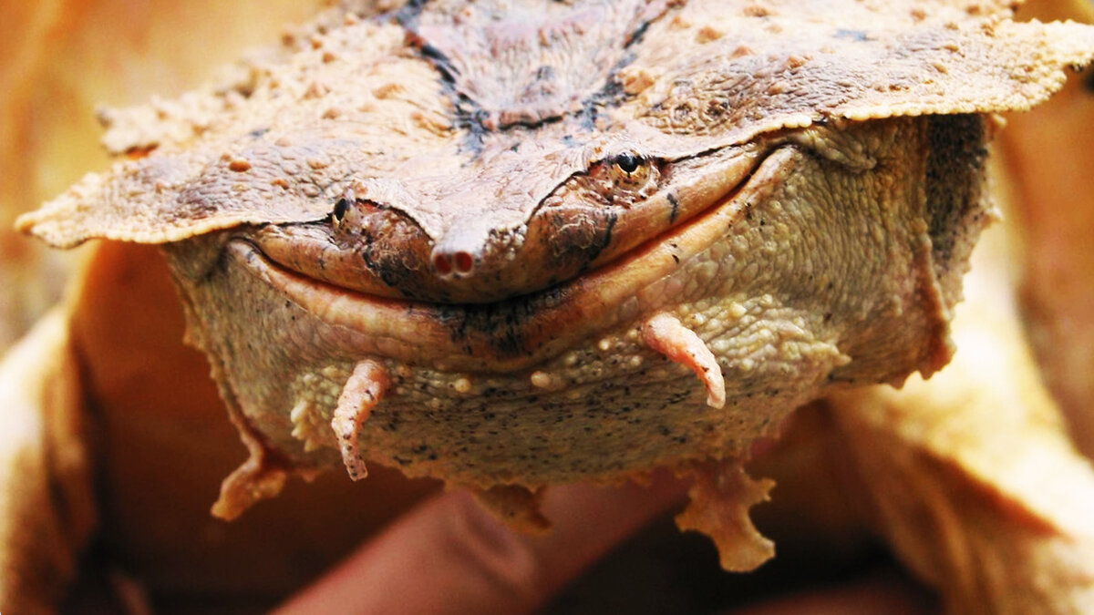 Кого можно встретить в городском террариуме? Змей, ящериц, лягушек, пауков... Вон и маленькие крокодилы под лампой греются. Интересно, как их будут содержать, когда малютки подрастут? Здесь им явно будет тесновато... Я с интересом рассматривал невольников террариумов и не сразу понял, кто смотрел на меня в очередном. Коряга? Нет, глаза вон, живые, любопытные. Да и хобот... Пригляделся. Из-за стекла за мной наблюдало существо с мордочкой, которую можно было принять за сморщенное лицо старушки. «Бахромчатая черепаха или мата-мата», — прочёл я по листу. Так вот ты кто такая! Никогда прежде такого лика у черепахи не видел. «Старушка» улыбалась за стеклом странной, задумчивой и всепонимающей улыбкой и почти не шевелилась, слившись с корягой. «А старушка-то с бородой», — решил я, глядя на странные наросты на подбородке. А шее и жираф позавидовать может. Вернувшись домой, сразу принялся искать информацию об этой странной черепахе. Она оказалась южноамериканской гостьей, которую чаще всего мо