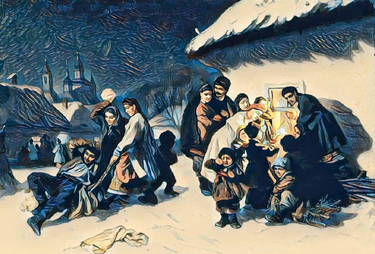 Последние выходные для коляды предназначенные. А там ещё несколько деньков и всё, сезон песен закончится. В нашем селе сия традиция бережно соблюдается. Но вот уже поди двадцать лет все хождения прекращаются ещё до полуночи. Хотя раньше бродили аж до первых петухов. Вопреки сложившемуся сейчас мнению, это вовсе не детское развлечение. По крайней мере было. В основном куралесила молодёжь. Но и люди в возрасте не брезговали пройтись по селу с песнями и шутками. Часто всю компанию звали за накрытый стол, пропустить стопочку, другую. Гудело всё село. Людям жадным и скупым, не пожелавшим принимать участие в празднике, вместо песен часто доставались шалости, подчас довольно существенные. Раньше чего только не случалось. Раньше, но вот уже давно масштабных шуток не случалось. А вот всё после чего… Прибегает к нам соседка чуть свет. Глаза на лбу. По всему видно, что новостями так и не терпится поделиться. Говорит, такое этой ночью было! Такое было! Непонятно кто или что полсела напугало. Вече