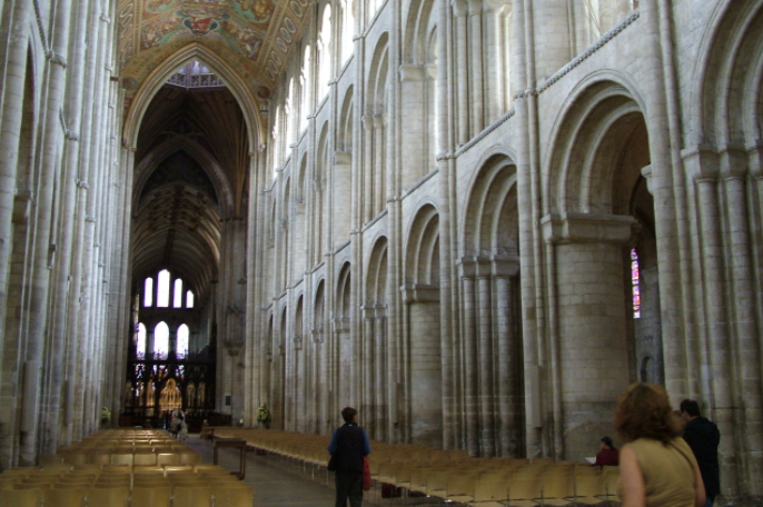 «Смотрите, какая у меня грандиозная романская церковь. Теперь вам ясно, какой я важный человек?». Вильгельм Завоеватель стремился стереть с лица земли любые напоминания о государстве саксов. Многие англосаксонские церкви были перестроены в нормандском романском стиле, для которого характерны массивные стены, закругленные арки и цилиндрические своды, в ту пору популярные в архитектуре континентальной Европы. Британский вариант этого стиля, который, кстати, иногда называют нормандским, а не романским, проник в страну из-за Ла-Манша еще до Вильгельма. На волне строительства XI-XII веков выросли огромные соборы, которые были не просто выражением