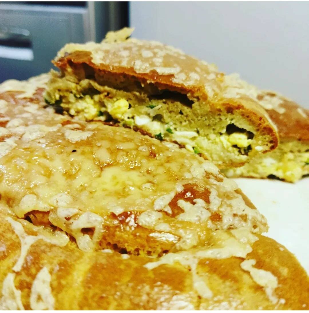 Ингредиенты: Тесто, яйца, сметана, растительное масло, разрыхлитель, мука, Специи , Начинка, зелёный лук, яйца, Специи , сметана Способ приготовления: Для начинки: яйца отварить до готовности и нарезать мелко. Зелёный лук нарезаем мелко. Смешать яйца + лук + специи + сметана. Для теста: смешать венчиком яйца + сметана + растительное масло + разрыхлитель + мука + специи. Духовку нагреть 180' Форму смазать слегка растительным маслом. В форму выкладываем немного теста + всю начинку + заливаем тестом. Выпекаем 40-45 минут при 180'(до готовности) P.S. за 5 минут до конца готовности можно посыпать твёрдым сыром. Приятного аппетита.