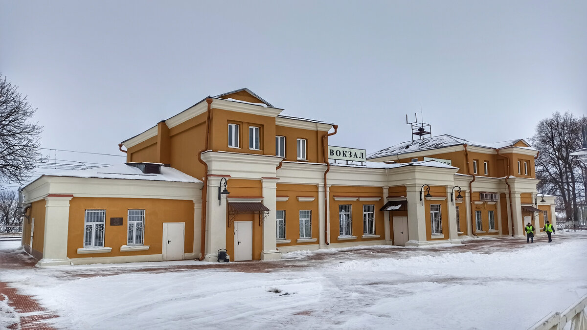 Вокзал станции Плавск Один из лучших вокзалов, что я видел в своей жизни! Плавск меня приятно удивил, причём несколько раз. Но именно вокзал сразу же покорил меня, как только я вышел из электрички на перрон. Первое, что покорило моё сердце - это пейзажи вокруг вокзала. А именно ЛЭП на холмистой местности. Потом я обратил внимание на багажное отделение и остановку станции "Паточная". Да, когда-то она называлась именно так. Здание вокзала, а также водонапорная башня тоже выглядят интересно. А между ними стоит маневровый тепловоз Калужского производства, с жёлтым вагоном-цистерной, на которой большими буквами написано слово - "спирт". На здании вокзала висят несколько мемориальных досок. Посвящённые Толстому, Тургеневу, Сафонову и что самое интересное - Сталину! Оказывается, что он был на этой станции в октябре 1919 года. Но самое удивительное и прекрасное, ждало нас внутри. Я до сих пор под впечатлением от увиденного. Вы только посмотрите насколько красиво выглядит зал ожидания! Л