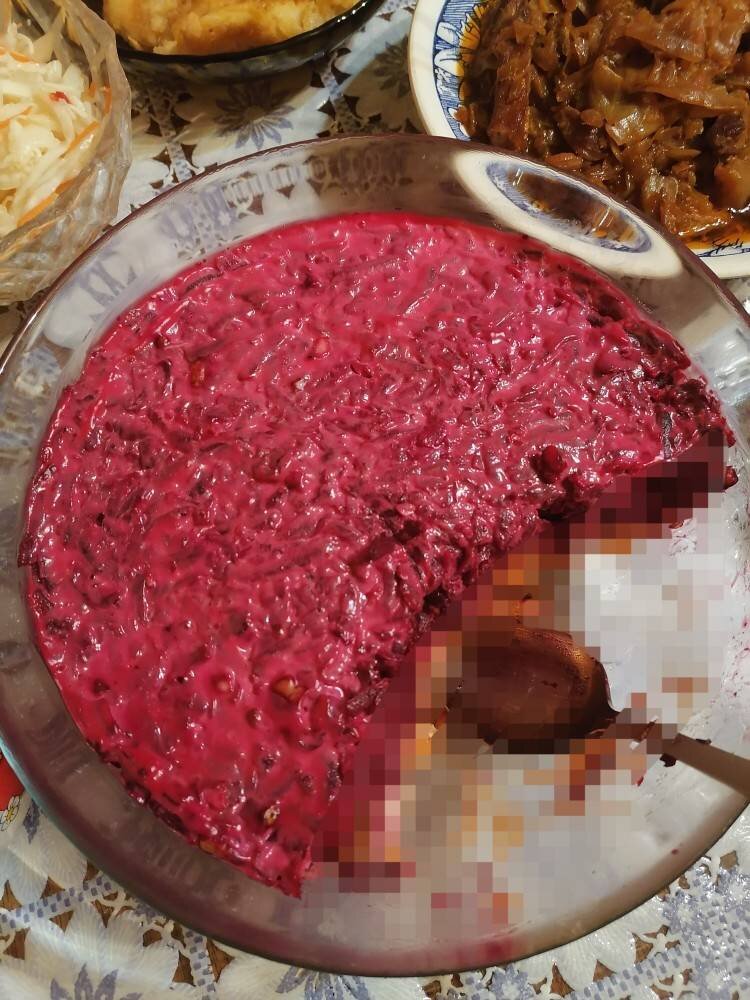 Очень многие называют этот салат "Любовница", но признаться честно мне это название оочень не нравится, как то режет слух, куда как приятнее, когда его многие хозяюшки, называют "Изюминка". Ингредиенты: свеклы средние и сладкие, средних моркови сырых, Сыр твердый "Российский", чеснок, а кто любит острее можно и больше, изюм белый, Грецкие орехи качественные очищенные, Майонез Способ приготовления: 1. Отваренную свеклу очищаем и натереть на крупной тёрке и смешать с толчеными грецкими орехами(убираем емкость в строну) 2. Морковь сырую натереть на средней тёрке и смешать с предварительно вымоченным изюмом (но не передержите в воде). 3. Сыр натереть на средней тёрке и добавить толчёный чесночок. СОБИРАЕМ СЛОИ: 1. МОРКОВЬ С ИЗЮМОМ. 2. СЫР С ЧЕСНОКОМ И МАЙОНЕЗОМ. 3. СВЁКЛА С ГРЕЦКИМ ОРЕХОМ, МАЙОНЕЗОМ.
