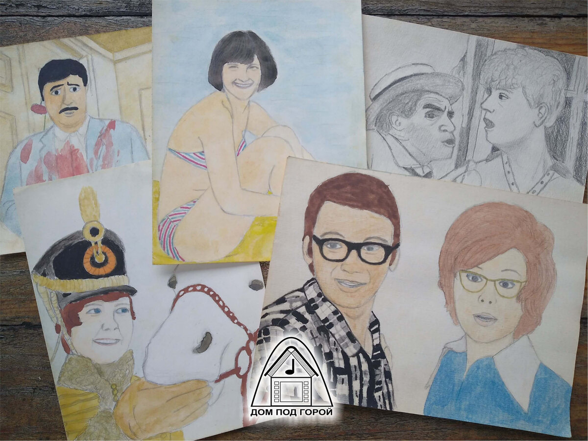 А ещё иногда, в разные периоды жизни, нападала любовь к рисованию. Однажды в юности, более двадцати лет назад, нахлынувшее желание рисовать совпало с пиком изучения советского кино (в особенности творчества Гайдая). И было это на каникулах, то есть было свободное время. В общем, наделал я тогда серию картинок. Недавно нашёл это в своих архивах, и решил поделиться со своими читателями. Сразу предупреждаю: строго не судите! Я не ходил ни в художественную школу, ни в кружок рисования. Просто иногда очень хотелось рисовать, вот я и брал в руки карандаш. Рисовал, как мог. Никакой игры света и тени, никаких полутонов — ничего этого я не умел. Просто рисовал контуры карандашом и раскрашивал самой простой гуашью с минимальным количеством цветов. И лишь в карандашных рису