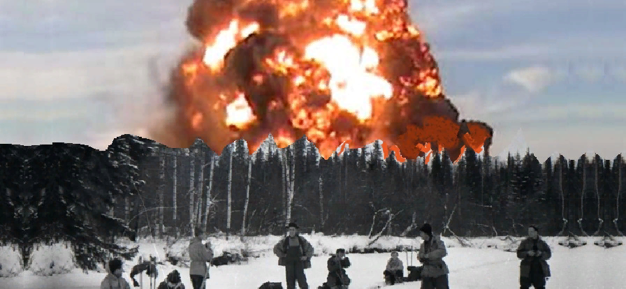 Шла группа Дятлова по своему маршруту где-то между тем самым перевалом и горой Отортен. И слева по курсу, на горизонте, над Уральским хребтом они увидели какие-то вспыхивающие в небе огненные шары. А у Золотарёва загорелось желание — сходить туда, разобраться, что это такое, или в крайнем случае просто сфотографировать. А впрочем, это желание у него загорелось на полгода раньше. Он от кого-то узнал, что в районе горы Отортен какие-то огненные шары иногда появляются. И решил он туда сходить в поход. В январе 1959 года он узнал, что в тот район идёт группа Дятлова. Ну, и напросился он с ними в поход идти. И вот они оказались в районе Отортена, увидели огненные шары. Но шары были слишком далеко. И решил Золотарёв сходить туда, поближе рассмотреть. Но Дятлов не согласился. Отклоняться от маршрута нельзя было! Да и время тратить на это тоже не следовало. Но Золотарёв не мог отступиться от своих планов. Он же ради шаров этих и пошёл в поход! Иначе не было смысла идти. В результате спора пришли к такому компромиссу: вся группа не пойдёт к огненным шарам, а сходит туда быстренько, налегке один Золотарёв, а остальные поставят палатку и будут его ждать. И Золотарёв пошёл. Но... с ним напросились идти ещё двое: Дубинина и Тибо-Бриньоль. Пошли втроём. Но они не знали, что эти огненные шары — взрывы вакуумных бомб. Там был полигон по испытанию бомб! И под взрыв одной из бомб они попали. Дубинина и Золотарёв погибли, а Тибо-Бриньоль впал в кому. А военные по их следам нашли палатку дятловцев, а потом и этих шестерых туристов, и тех троих увезли на вертолёте на свою базу. Две недели или чуть больше содержались живые и мёртвые туристы на военной базе. А Хрущёв эти две недели думал — что делать с этими туристами. И придумал.
