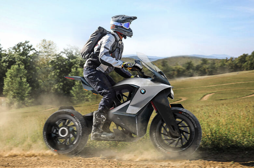 Концептуальный электрический мотоцикл BMW D-05T оснащен магнитной системой хранения спереди и сзади для хранения вместе со сменными батареями, чтобы легко увеличить дальность езды.