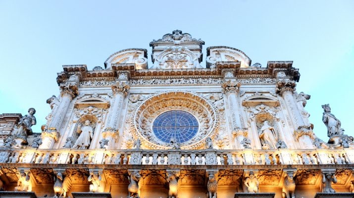 Лечче. Ее архитектурное наследие принесла ей имя Флоренция юга. Достаточно заблудиться по улицам города более представительным Саленто , чтобы полюбоваться на дворцы, памятники и церкви, построенные в белый и светлый камень, но излюбленными местами являются, безусловно, Собор Святой Крест, изготовленный в XVI веке и до конца XVII, а возле Дворца Небесного, начиная с Семнадцатого, а сегодня расположен Дворец Правительства и областной Администрации, Собор с высокой колокольней, и Епископский Дворец.