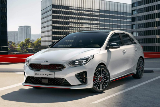 На мотор-шоу в Париже две тысячи восемнадцатого прошла премьера «подогретого» KIA Ceed 3 GT, построенного на базе модели третьего поколения. Причем если ранее данная версия предлагалась в трех и пятидверном кузове хэтчбек, то отныне трехдверки больше не будет, зато появился shooting brake. Снаружи новую модель Киа Сид GT 2021 (фото и цена) выдают красные акценты по периметру кузова, а также черные лакированные вставки. Автомобиль поставлен на 18-дюймовые колесные диски эксклюзивного дизайна и щеголяет оригинальными бамперами. Передний бампер на Ceed GT в новом кузове получил увеличенные боковые секции воздухозаборников, из которых пропали противотуманки, а задний бампер обзавелся диффузором, двумя хромированными патрубками выпускной системы и крупными треугольными секциями по бокам. В салоне новый KIA Ceed GT 2021 щеголяет отделкой из черной кожи с красной строчкой и вставками из замши, черным потолком, алюминиевыми накладками на педалях, а также рулевым колесом с усеченным по низу обо