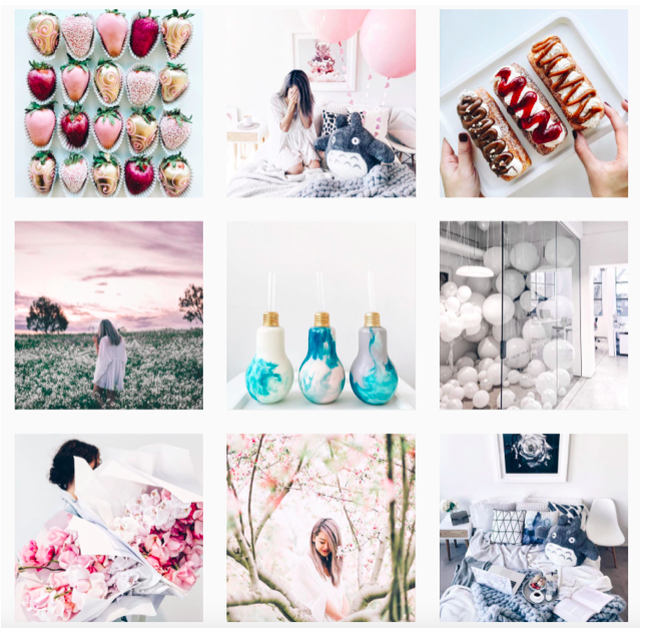 Немаловажный элемент оформления в Инстаграм — это выбранная цветовая гамма фотографий. Определитесь в самом начале, какое настроение должны создавать ваши фотопосты: спокойное, оформленное в мягких, пастельных тонах, или, наоборот, энергичное — с яркими, сочными цветами. Выбор цветовой гаммы может зависеть от тематики страницы. К примеру, для магазина нижнего белья выигрышно будут смотреться фотографии в стиле минимализм, в то время как детский блог сложно представить без солнечных, теплых тонов.