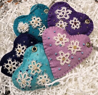Всем привет! Сегодня рассказываю, как можно из небольшого кусочка фетра сделать замечательный подарок. Немного времени, фантазия и романтический брелок – сердечко будет радовать его обладателя как минимум несколько раз в день и напоминать о Вас. Делаем брелок в форме сердечка из фетра. Для того, чтобы сделать сердечко нужно Фетр любого цвета, цветочек или любое украшение для сердечка, бисер, иголка, нить для обметывания и в цвет фетр, тонкая игла для бисера и обычная, холлофайбер или синтепон, или вата для наполнения, кнопочка для люверса ( если ее нет, можно просто пришить большую петельку для ключей) замок-карабин для ключей. Все это можно найти дома или купить в интернет- магазинах не выходя из дома. Приступим к работе Вначале можно связать с помощью 2-х челноков красивые цветочки. Мастер-класс по изготовлению цветочков есть здесь. Если вы не умеете вязать челноками, то можно украсить сердечко по-другому. Например, вышивкой в стиле рококо. Здесь главное – творческий подход. Далее б