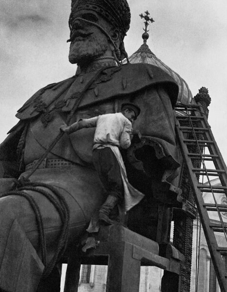 Здесь бы я еще хотел отметить, что для нашей истории, увы, характерны «манипуляции с памятниками и названиями». К примеру, Памятник императору Александру III, открытый в 1912 году, был демонтирован большевиками в 1918 году. Топонимика «имени Троцкого», популярная в двадцатые годы, «исчезла» в тридцатые годы. «Рабоче-крестьянские» деятели культуры, такие как Владимир Иванович Блюм, Джек Моисеевич Алтаузен и Демьян Бедный призывали... снести Памятник Минину и Пожарскому.